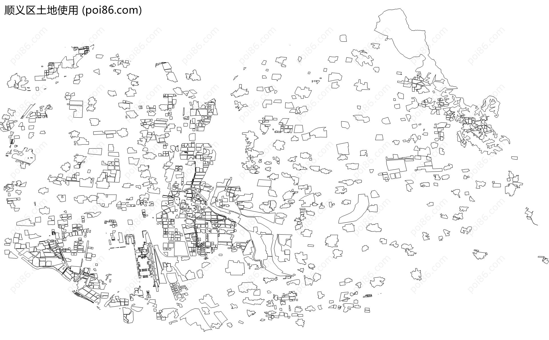 顺义区边界|建筑轮廓|土地使用|铁路轨道|道路路网|水域|水系水路|GeoJSON|Shapefile