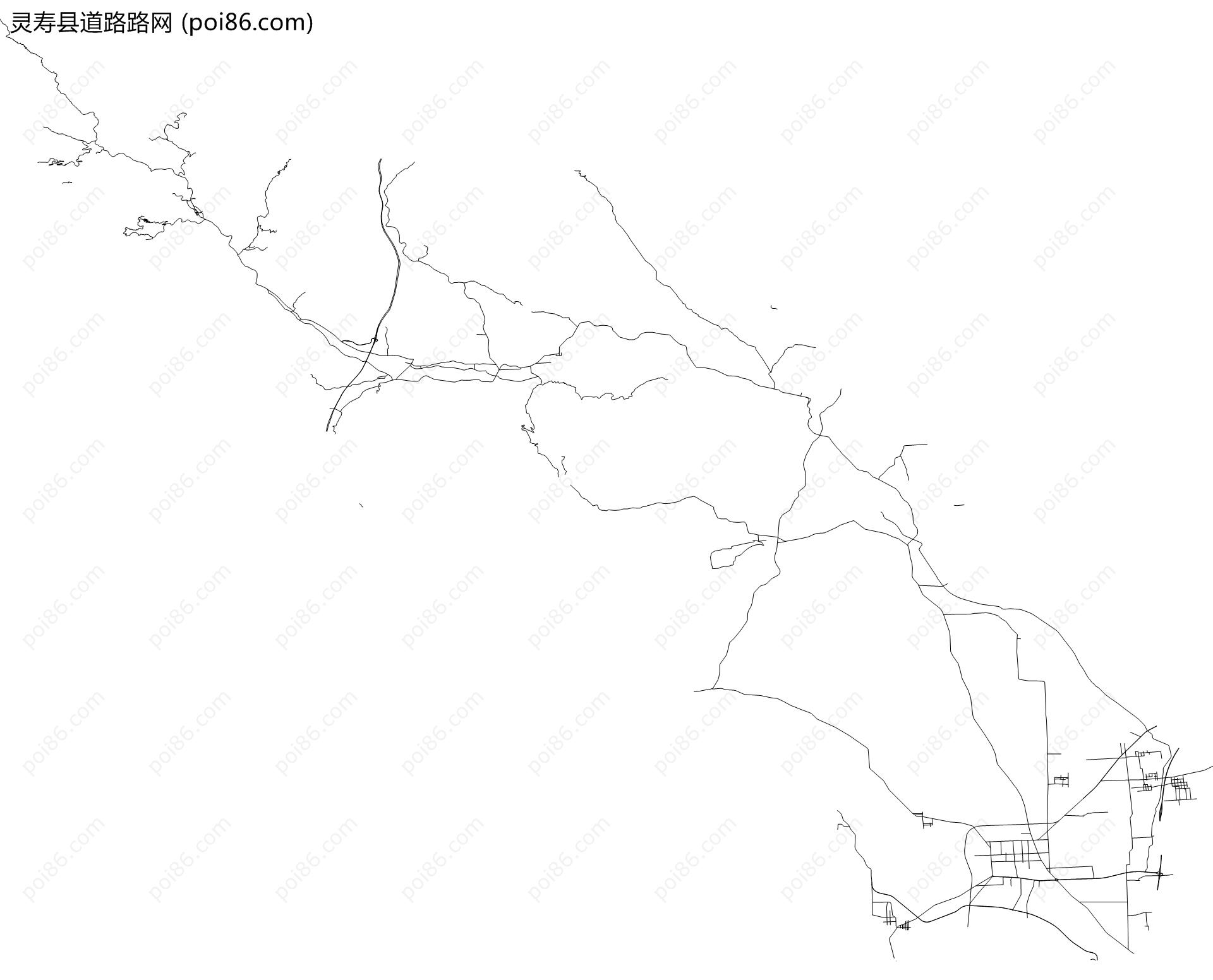 灵寿县边界|建筑轮廓|土地使用|铁路轨道|道路路网|水域|水系水路|GeoJSON|Shapefile
