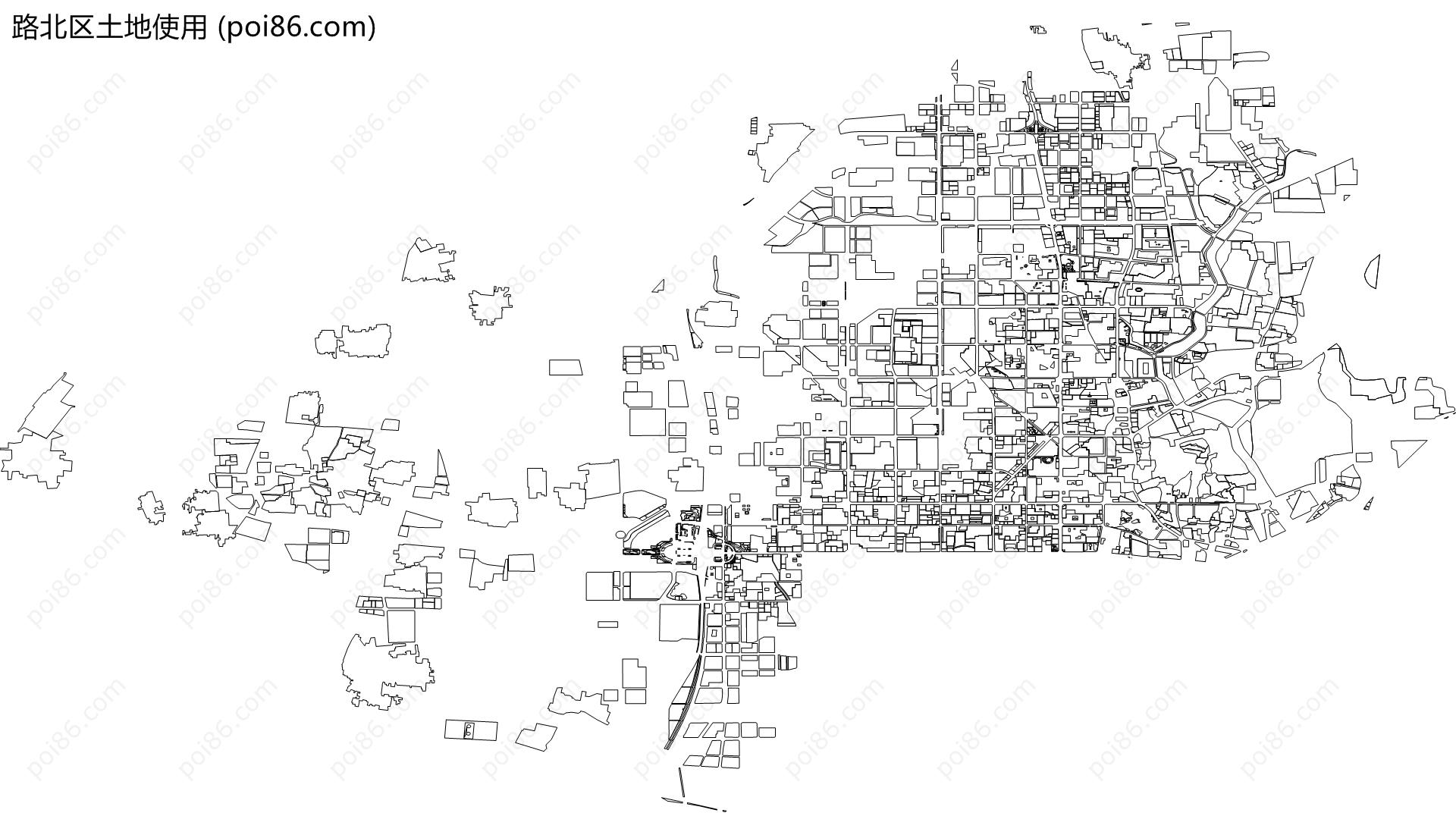 路北区边界|建筑轮廓|土地使用|铁路轨道|道路路网|水域|水系水路|GeoJSON|Shapefile