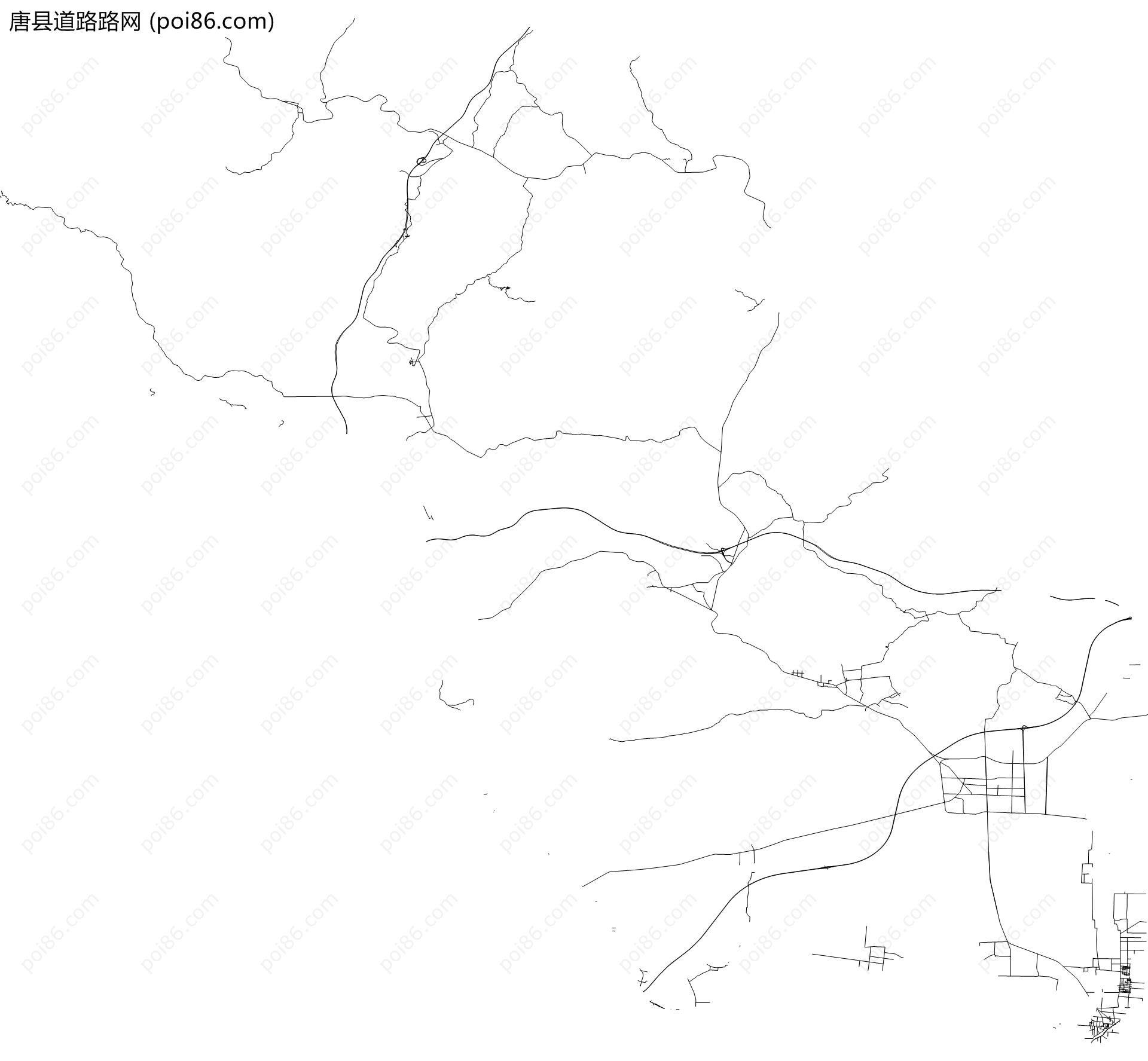 唐县边界|建筑轮廓|土地使用|铁路轨道|道路路网|水域|水系水路|GeoJSON|Shapefile