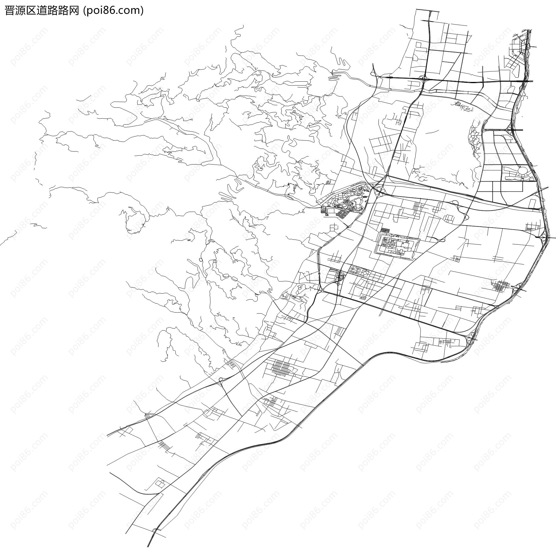 晋源区边界|建筑轮廓|土地使用|铁路轨道|道路路网|水域|水系水路|GeoJSON|Shapefile