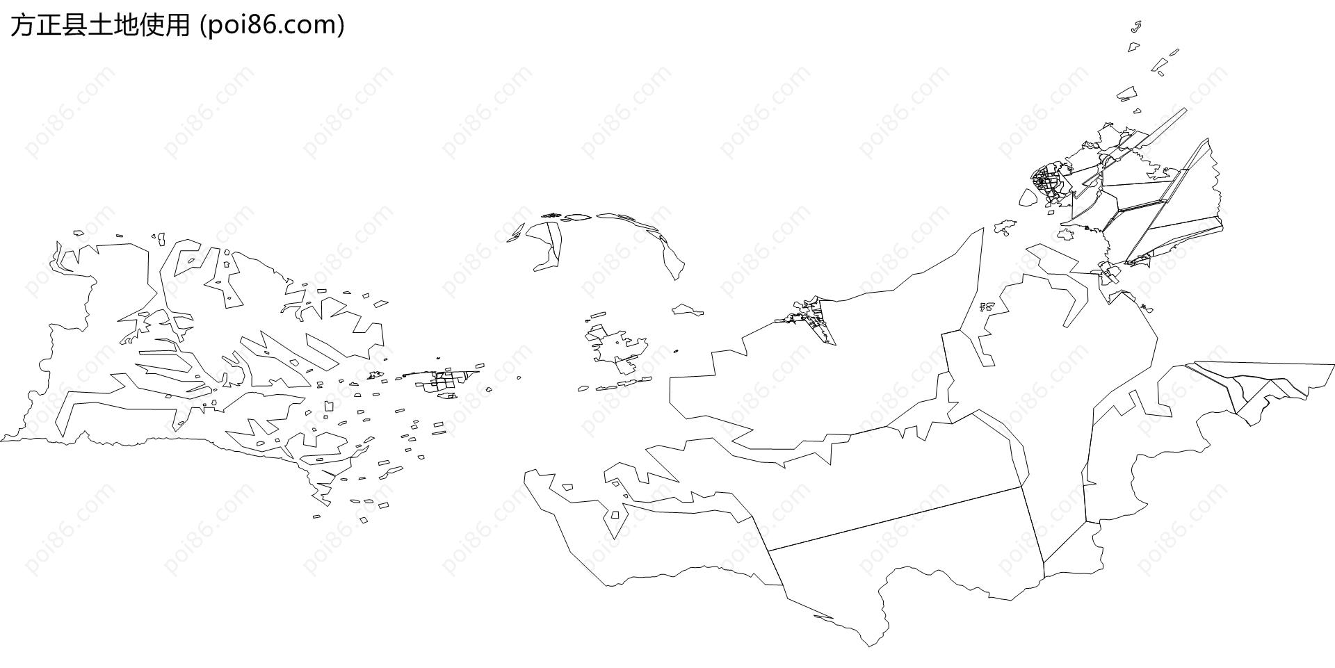 方正县边界|建筑轮廓|土地使用|铁路轨道|道路路网|水域|水系水路|GeoJSON|Shapefile