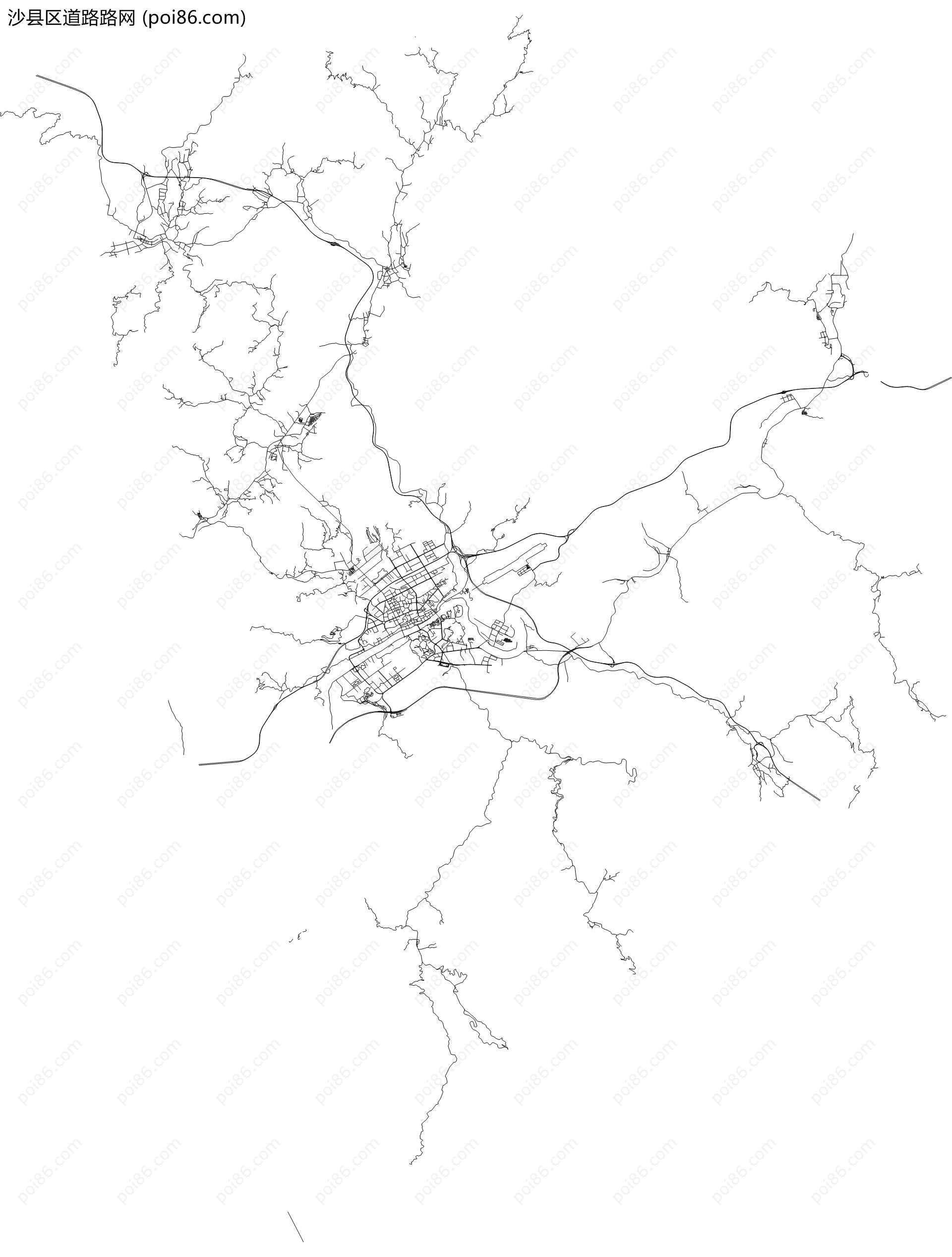沙县区边界|建筑轮廓|土地使用|铁路轨道|道路路网|水域|水系水路|GeoJSON|Shapefile