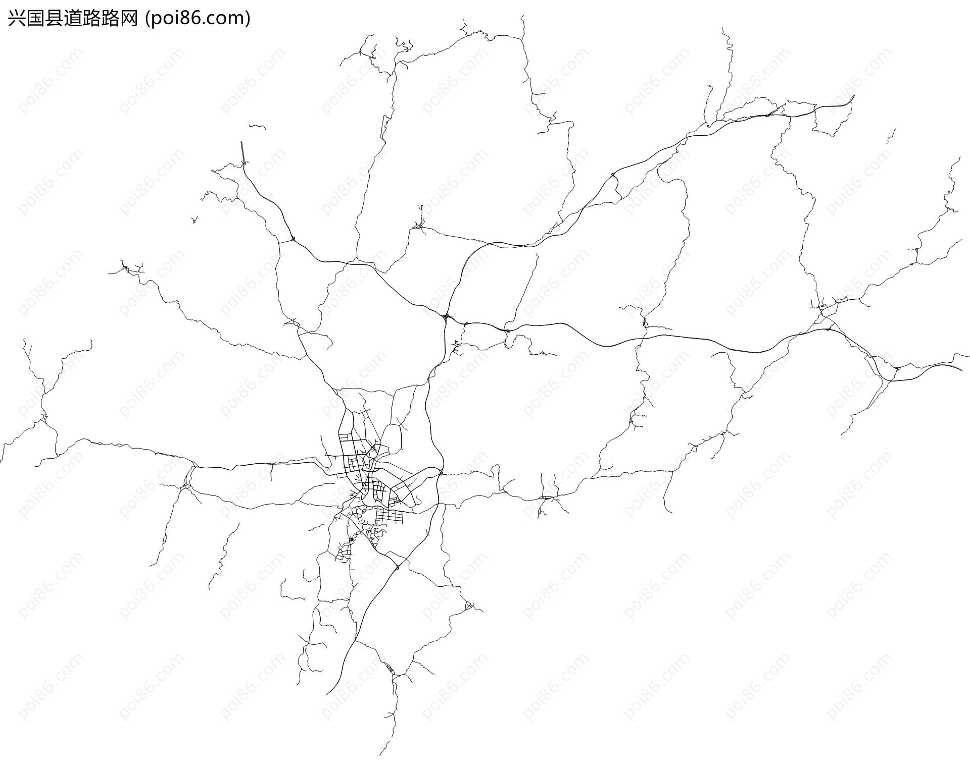 兴国县边界|建筑轮廓|土地使用|铁路轨道|道路路网|水域|水系水路|GeoJSON|Shapefile