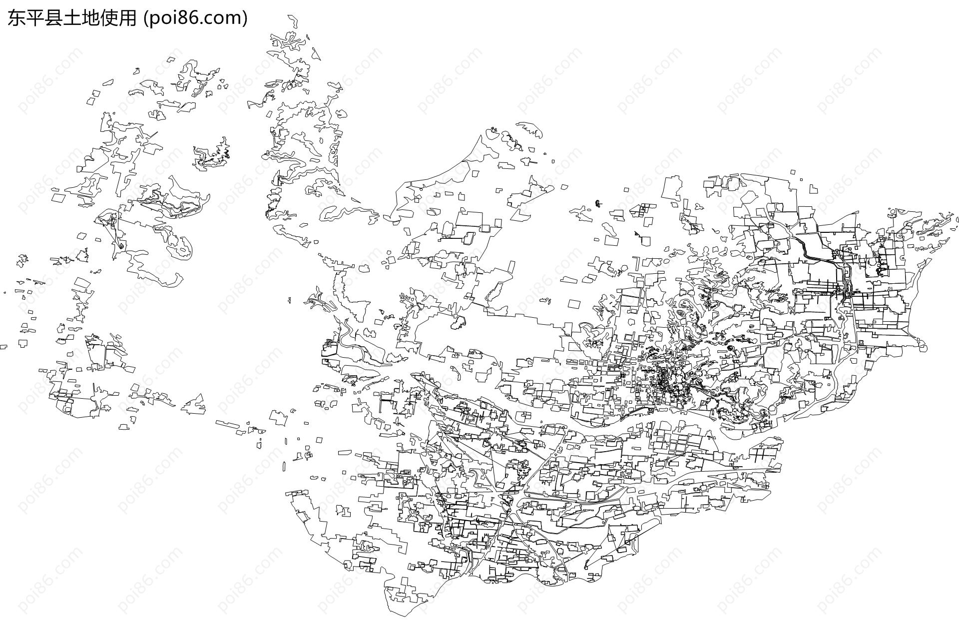 东平县边界|建筑轮廓|土地使用|铁路轨道|道路路网|水域|水系水路|GeoJSON|Shapefile