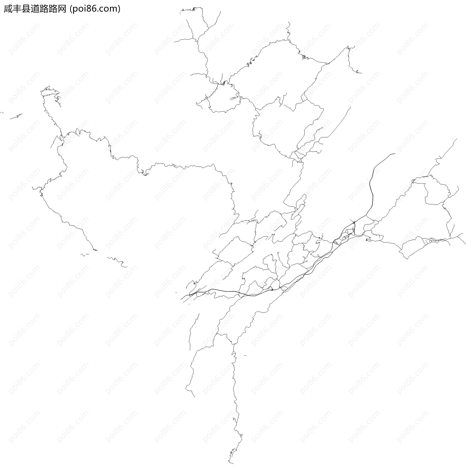 咸丰县边界|建筑轮廓|土地使用|铁路轨道|道路路网|水域|水系水路|GeoJSON|Shapefile