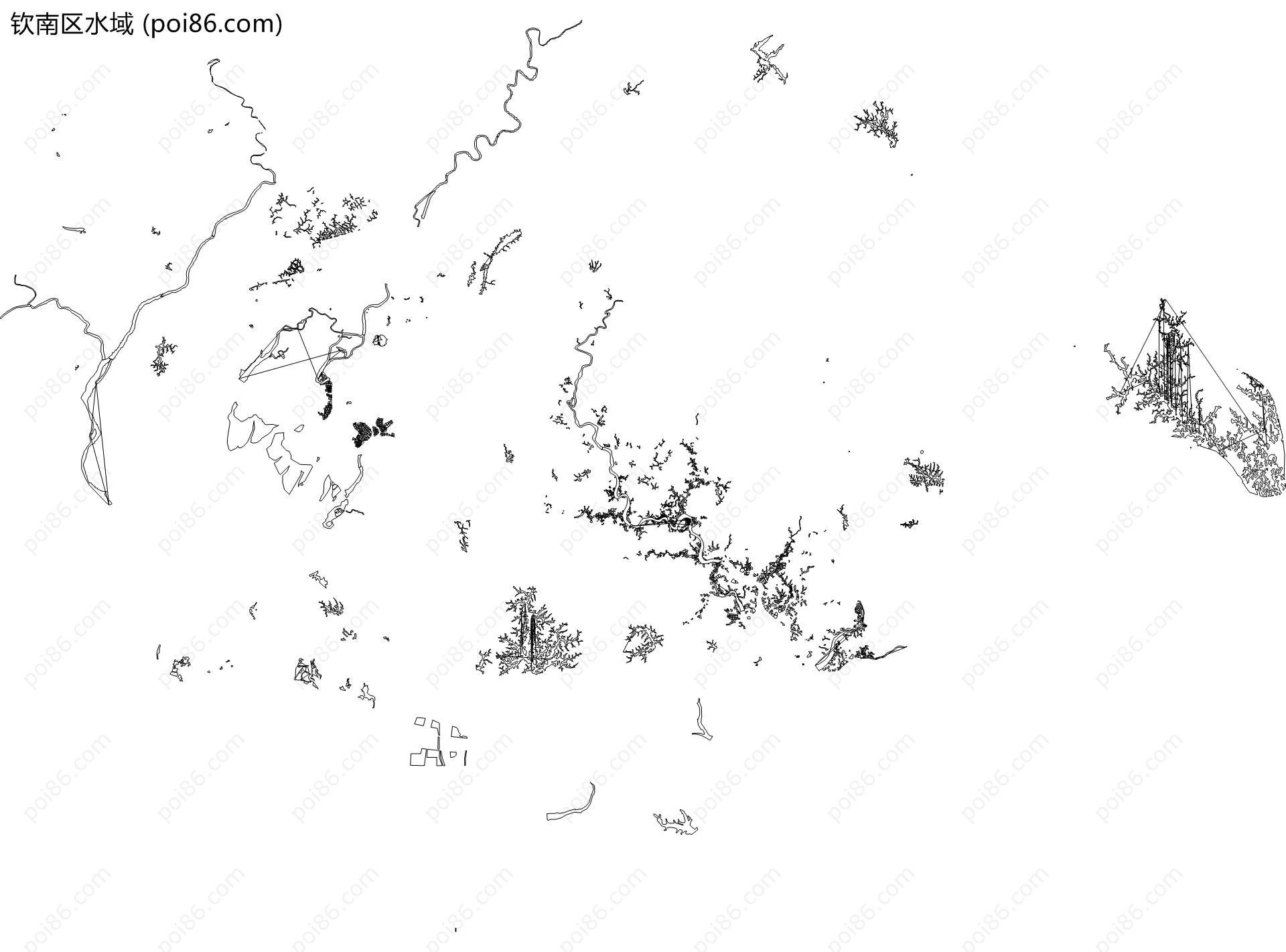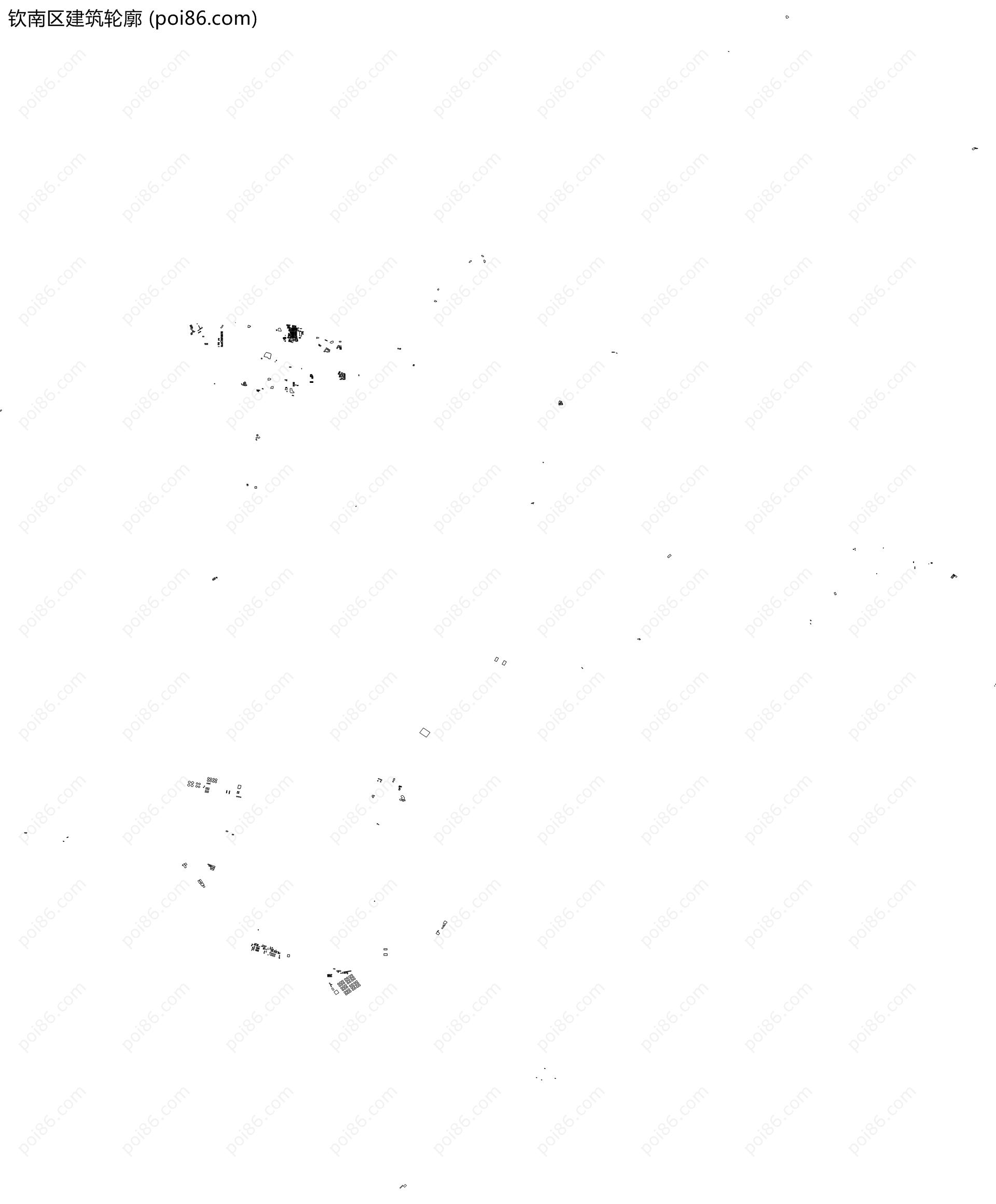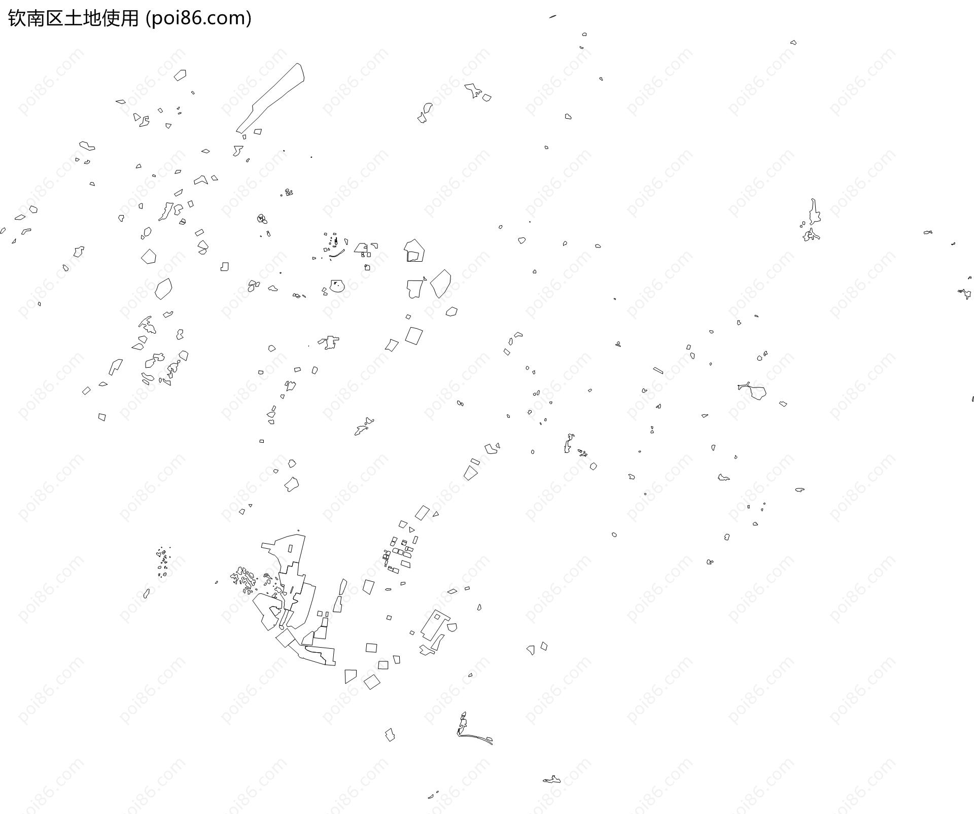 钦南区边界|建筑轮廓|土地使用|铁路轨道|道路路网|水域|水系水路|GeoJSON|Shapefile