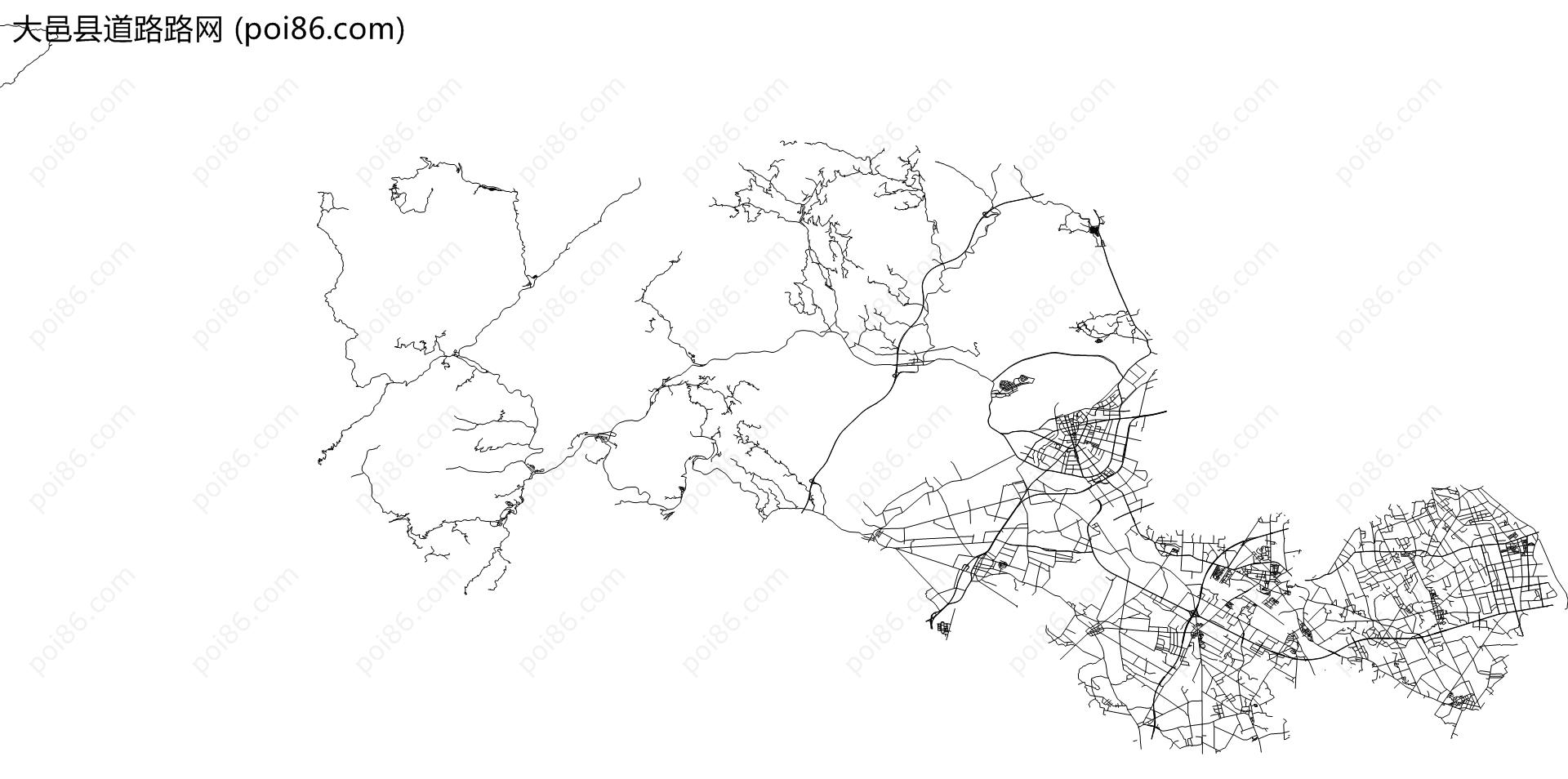大邑县边界|建筑轮廓|土地使用|铁路轨道|道路路网|水域|水系水路|GeoJSON|Shapefile