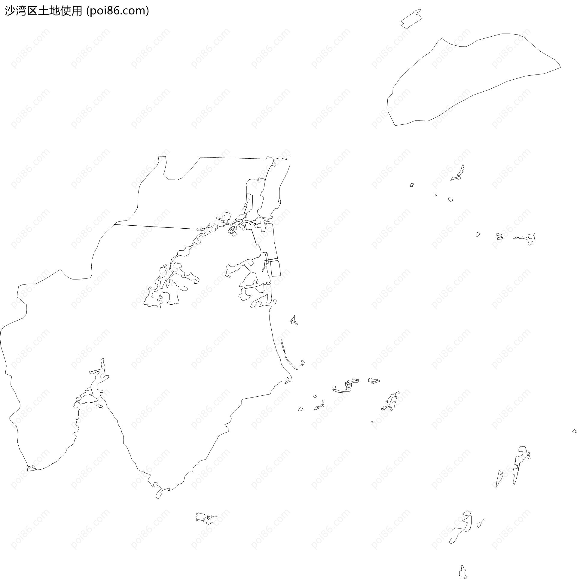 沙湾区边界|建筑轮廓|土地使用|铁路轨道|道路路网|水域|水系水路|GeoJSON|Shapefile