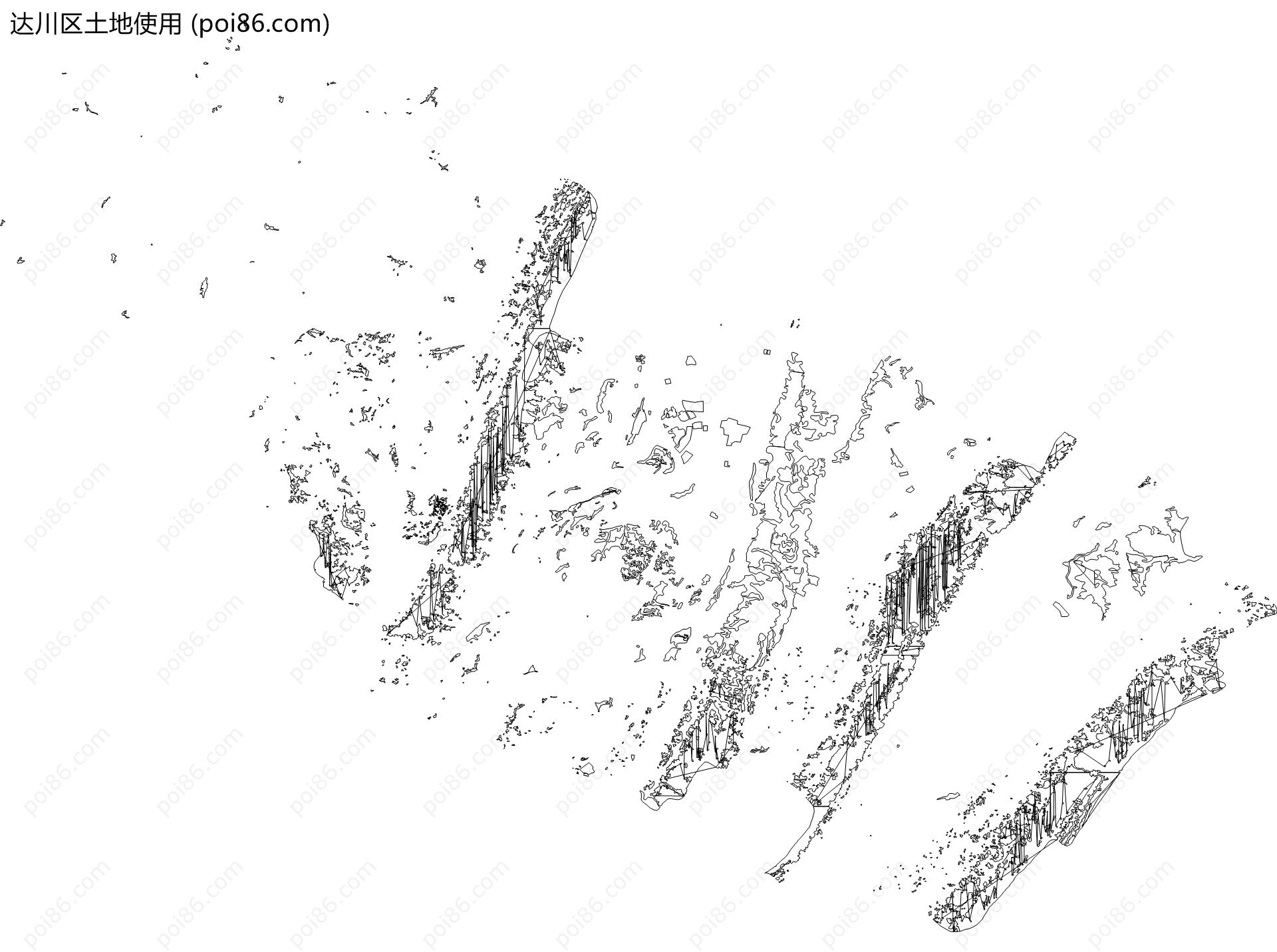 达川区边界|建筑轮廓|土地使用|铁路轨道|道路路网|水域|水系水路|GeoJSON|Shapefile