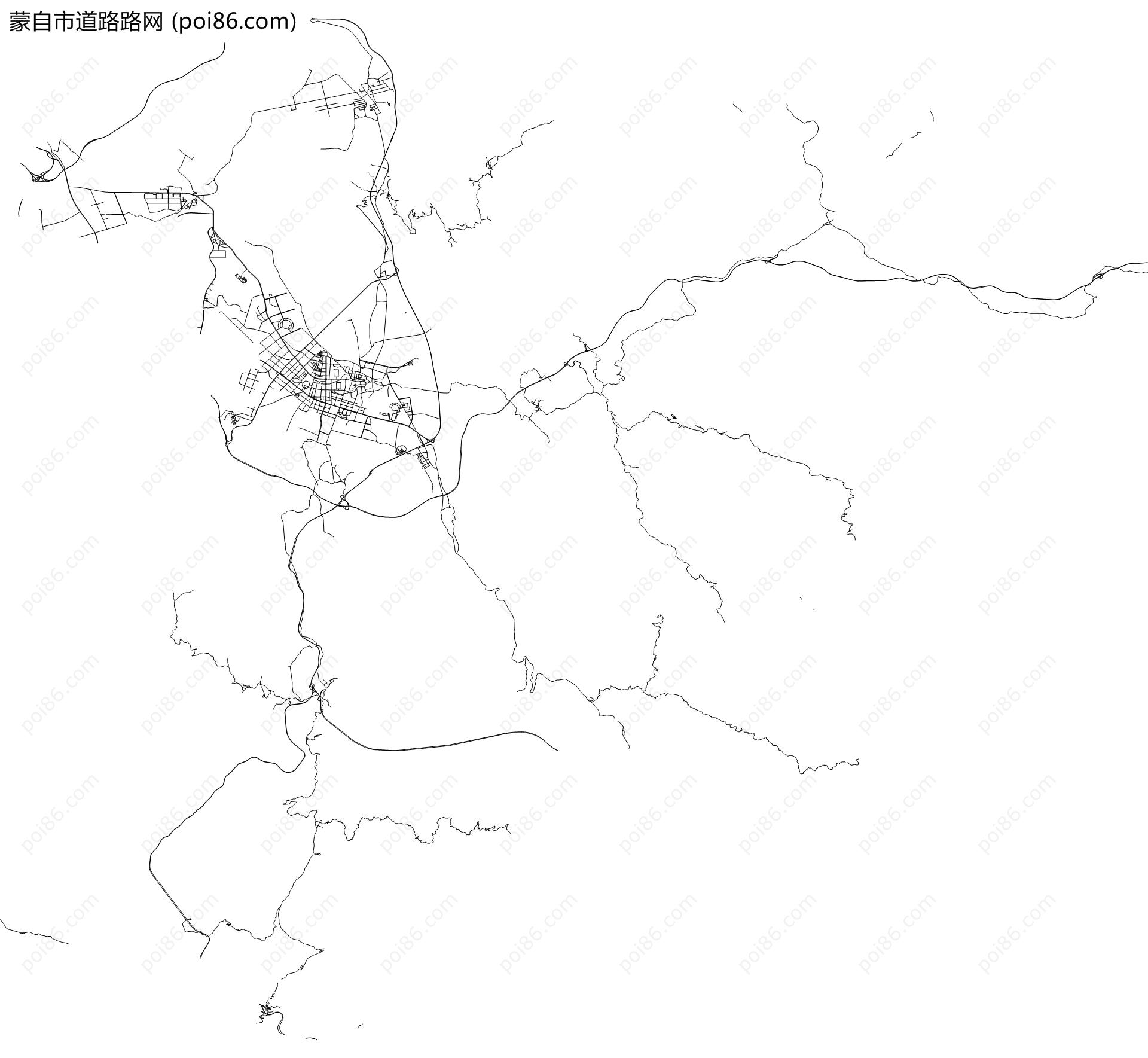 蒙自市边界|建筑轮廓|土地使用|铁路轨道|道路路网|水域|水系水路|GeoJSON|Shapefile