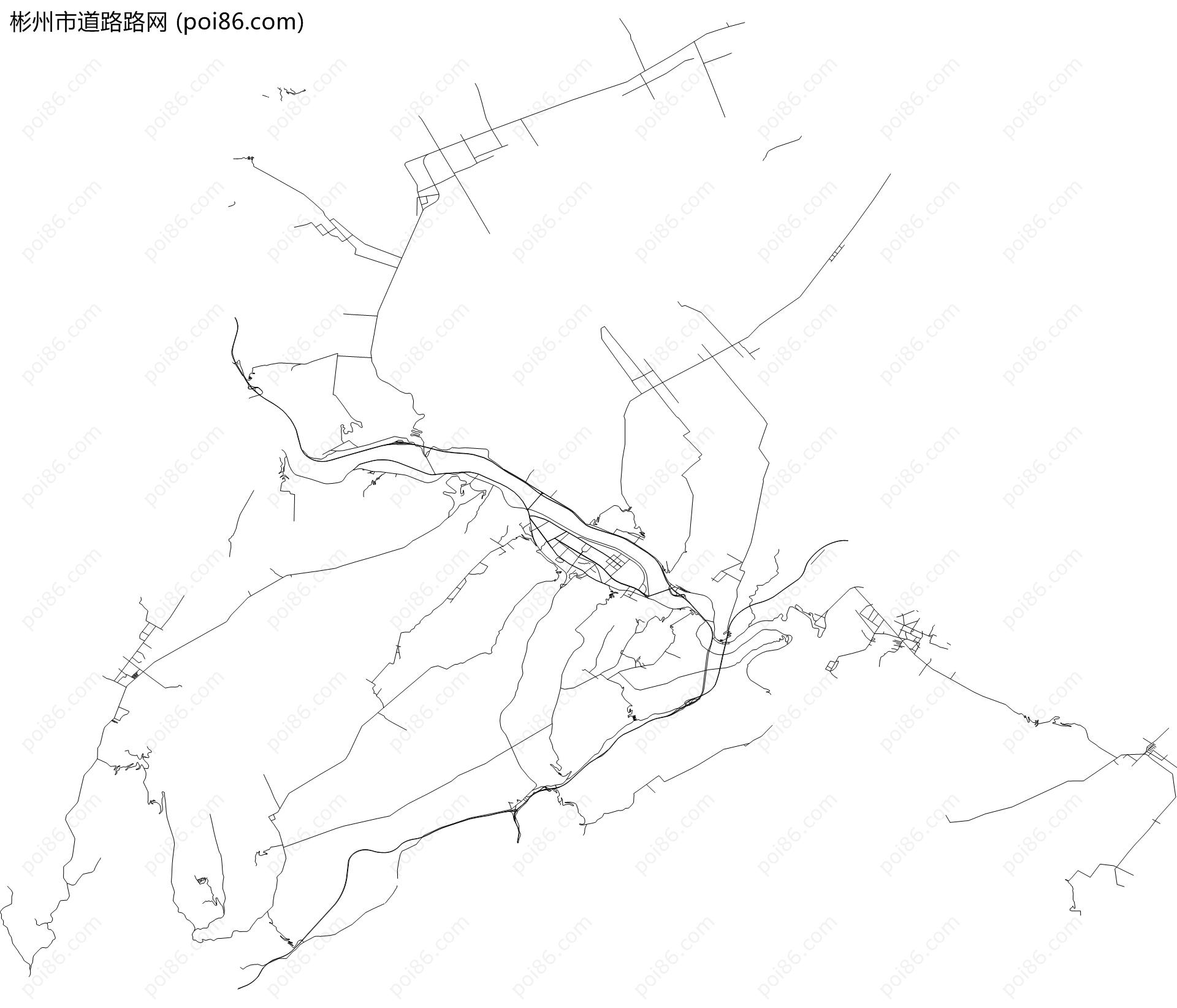 彬州市边界|建筑轮廓|土地使用|铁路轨道|道路路网|水域|水系水路|GeoJSON|Shapefile