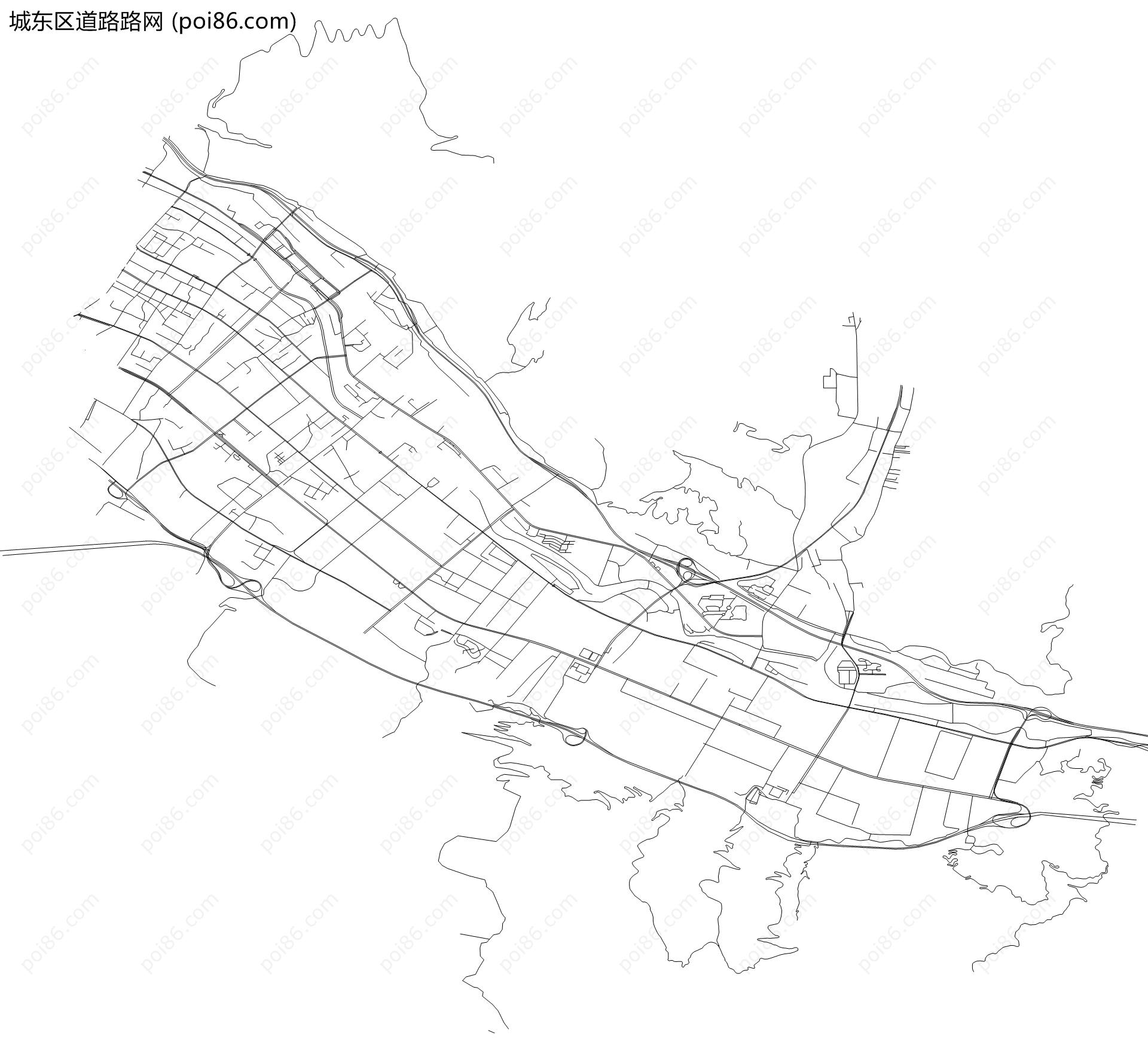 城东区边界|建筑轮廓|土地使用|铁路轨道|道路路网|水域|水系水路|GeoJSON|Shapefile