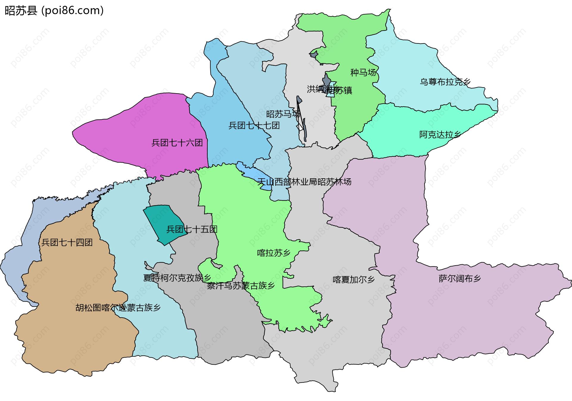 | 昭苏县第一中学 | 昭苏镇 | 科教文化服务;学校;中学 | |